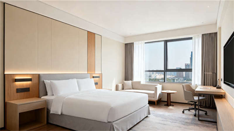 外觀設計摒棄繁雜裝飾,采用簡潔的線條與溫潤的材質(zhì)搭配,既展現(xiàn)出酒店的大氣質(zhì)感,又融入了對周邊環(huán)境的適配性,避免過于突兀的視覺沖擊。室內(nèi)部分,大堂以開闊的空間布局為基礎(chǔ),通過柔和的燈光與自然材質(zhì)的運用,營造出溫馨且具格調(diào)的接待氛圍,讓賓客步入時便能感受到舒適感;客房聚焦居住的實用性與舒適度,軟裝搭配注重色彩的協(xié)調(diào),家具選型兼顧美觀與功能性,為賓客打造休憩的理想空間;餐廳設計則圍繞用餐體驗展開,燈光與餐桌布局相互配合,營造出適宜聚餐或獨處的用餐氛圍;會議室注重空間的功能性,合理的桌椅擺放與完善的配套設計,滿足不同會議場景的需求;健身房以簡潔明快的風格為主,確保運動空間的通透感,讓賓客在運動時保持愉悅心情;游泳池周邊則通過軟裝與燈光的搭配,營造出放松愜意的氛圍,為賓客提供休閑放松的好去處。整體設計始終以提升賓客體驗為核心,讓每個空間既具自身特色,又能融入整體風格之中。