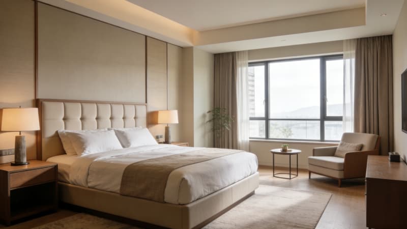 本方案專為合肥本地酒店量身打造,深度融合皖韻文化與現(xiàn)代設(shè)計(jì)美學(xué),覆蓋外觀、大堂、走廊、雙床房、兩間特色大床房、衛(wèi)生間及會(huì)議室八大核心空間。外觀以簡約大氣的線條為基礎(chǔ),嵌入徽派建筑標(biāo)志性的馬頭墻元素與落地玻璃,實(shí)現(xiàn)采光與地域辨識(shí)度的雙重提升。大堂采用挑高設(shè)計(jì),搭配淺灰石材地面與原木裝飾,前臺(tái)背景墻融入巢湖風(fēng)光元素,營造開闊舒適的接待氛圍??头糠謪^(qū)明確,大床房1側(cè)重溫馨靜謐,搭配暖光照明與定制軟裝;大床房2主打商務(wù)簡約,增設(shè)多功能辦公區(qū);雙床房注重空間利用率,保障賓客隱私。衛(wèi)生間采用干濕分離設(shè)計(jì),搭配防霧鏡與智能衛(wèi)浴設(shè)備,提升便捷性。會(huì)議室配備高清投影與專業(yè)聲學(xué)系統(tǒng),可滿足商務(wù)洽談、小型發(fā)布會(huì)等多元需求。整體設(shè)計(jì)兼顧美觀性與實(shí)用性,既契合合肥文旅發(fā)展趨勢(shì),又能精準(zhǔn)匹配商務(wù)、旅游等不同客群需求,助力酒店提升核心競爭力。