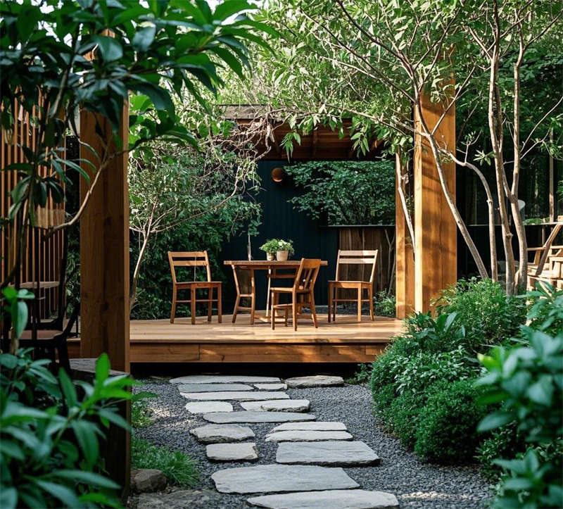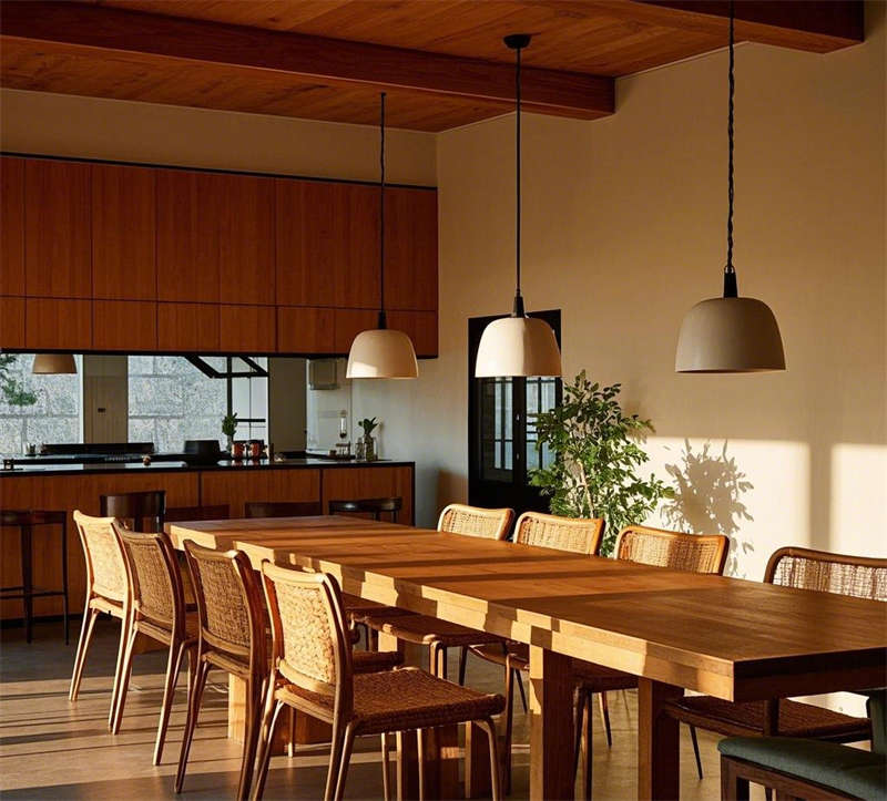 這套1000平民宿設(shè)計以自然簡約風(fēng)格為核心,營造出溫暖舒適、貼近自然的居住體驗。整體空間以原木色調(diào)為主,搭配米白色、淺灰等柔和色彩,輔以綠植點綴,呈現(xiàn)出清新自然的氛圍。大堂以原木色前臺和藤編吊燈為亮點,搭配落地窗引入充足光線,營造出溫馨的迎賓空間。客廳采用開放式布局,原木地板與編織地毯相得益彰,搭配圓形茶幾和落地?zé)簦蛟斐鲚p松愜意的休閑區(qū)域。餐廳延續(xù)自然風(fēng)格,長桌與藤編餐椅的組合簡潔大方,開放式廚房與吧臺的設(shè)計增強了空間的互動性。臥室分為兩種風(fēng)格,一種以藤編床頭和棉麻床品為主,營造出舒適的睡眠環(huán)境;另一種采用日式榻榻米設(shè)計,搭配推拉門和竹林景觀,傳遞出寧靜禪意的氛圍。浴室同樣注重自然元素的運用,圓形浴缸與綠植的結(jié)合讓人仿佛置身于自然之中,而日式風(fēng)格的浴室則通過竹制裝飾和庭院景觀,進一步強化了寧靜放松的體驗。戶外庭院以石板小路和木質(zhì)平臺為主,搭配休閑桌椅和綠植環(huán)繞,為客人提供了一個親近自然的戶外休閑空間。整體設(shè)計注重材質(zhì)與光影的運用,將自然元素與現(xiàn)代簡約風(fēng)格完美融合,打造出一個舒適、放松的民宿空間。
