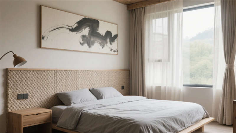 步入大廳,弧形亞麻沙發(fā)與編織地毯圍合出松弛場(chǎng)域,整面落地窗借景庭院竹影,琴葉榕與懸浮綠植墻形成立體生態(tài)敘事。多功能區(qū)以巢湖水波紋地毯呼應(yīng)地域脈絡(luò),壁爐旁的非遺火筆畫(huà)裝置暗藏城市文化密碼??Х劝商倬幾闻c水磨石臺(tái)面碰撞,幾何綠植墻在百葉光影中演繹晨昏詩(shī)意。