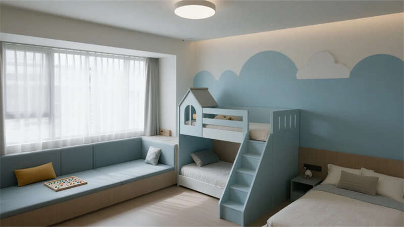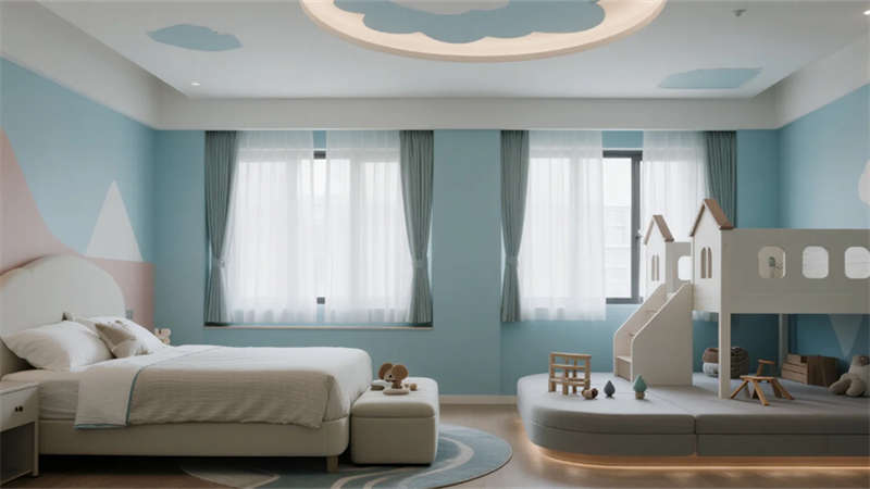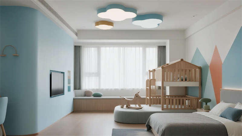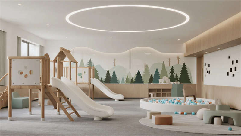 公共區(qū)域強調(diào)功能與美學的平衡:開放式游樂區(qū)釋放孩子天性,閱讀角的樹洞書架激發(fā)想象力,手工坊的彩虹收納系統(tǒng)培養(yǎng)創(chuàng)造力。戶外庭院融入沙坑與綠植,讓自然成為游戲場;夜晚的星空影音室則轉(zhuǎn)為家庭溫馨劇場。整體設計通過流動的空間布局,讓家長與孩子在簡約美學中共享親密時光,重新定義合肥親子度假的體驗方式。