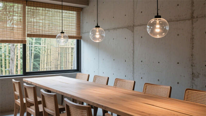 本設(shè)計(jì)以自然與現(xiàn)代的融合為核心,延續(xù)了原木、玻璃與清水混凝土的材質(zhì)語言,將合肥地域的溫潤(rùn)氣質(zhì)與侘寂美學(xué)相呼應(yīng),打造出兼具舒適感與藝術(shù)感的居住場(chǎng)景。公共區(qū)域中,淺橡木色的柜體與天花線條連貫延伸,搭配通透的玻璃隔斷,讓光線自由穿梭,模糊室內(nèi)外的邊界;清水混凝土墻面保留了原始肌理,與苔蘚綠的軟裝陳設(shè)形成柔和對(duì)比,傳遞出質(zhì)樸而寧靜的氛圍。?