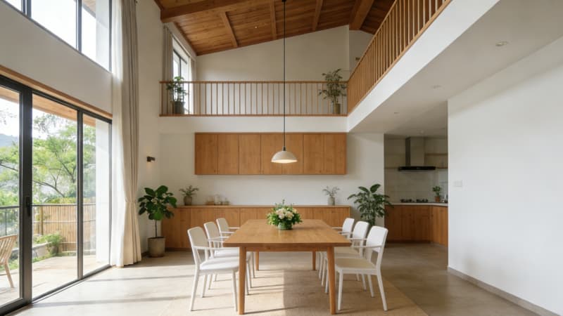 設(shè)計同時兼顧實(shí)用性與打卡屬性,公共區(qū)域設(shè)置徽派文創(chuàng)展示區(qū)、咖啡吧臺與親子互動角,滿足不同客群需求。整體空間選用本地環(huán)保建材,搭配暖調(diào)燈光系統(tǒng),既彰顯合肥地域特色,又為游客與本地居民提供高品質(zhì)的休憩、社交場景,成為合肥民宿設(shè)計中徽風(fēng)與現(xiàn)代融合的典型案例。