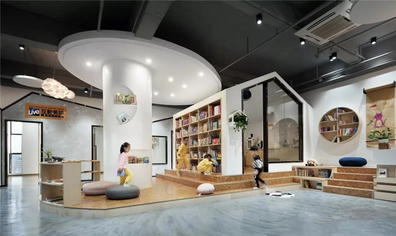 客戶是一位海歸媽媽,她想要空間能承載更多互動,尋求去低齡化的審美風格,讓環(huán)境回歸簡潔自然。設計師用建筑思維打造一個以繪本教育為主題的幼兒學習環(huán)境,用硬裝創(chuàng)造立體多維的空間,在二維與三維的空間交錯中嘗試營造更能激發(fā)創(chuàng)造力的成長環(huán)境。