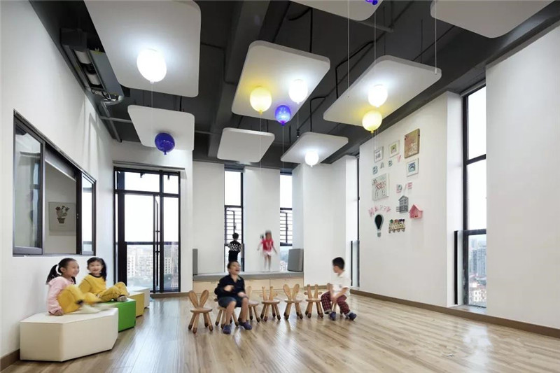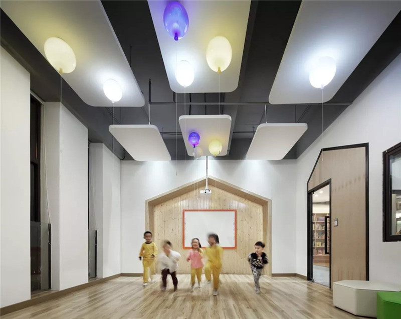 多功能室與互動教室不做具象的使用功能,留空間給孩子挖掘,以保持孩子的活躍度。發(fā)揮實體建筑落地窗的優(yōu)越性,將通風、采光做到極致。