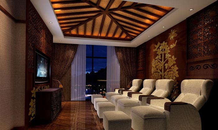 在空間及功能上,立體大氣且具有東南亞風(fēng)情的接待大廳與風(fēng)格典雅奢華的異域包廂相結(jié)合,再巧妙地融入東方獨(dú)到著佛教元素,從文化和生活層面?zhèn)鬟_(dá)出現(xiàn)代人對(duì)休閑養(yǎng)生的高品質(zhì)追求。