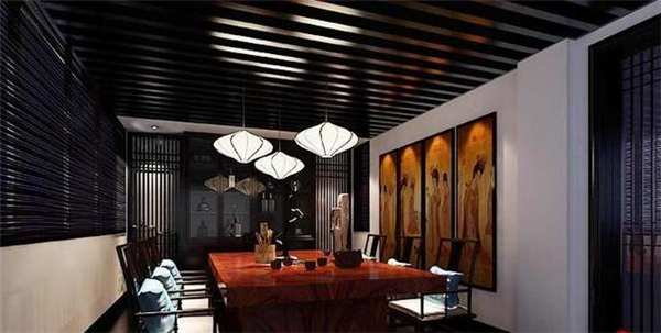 而在裝飾細(xì)節(jié)上崇尚自然情趣,花鳥、魚蟲等精雕細(xì)琢,富于變化,體現(xiàn)了中國傳統(tǒng)美學(xué)精神,又給人的內(nèi)心深深的感動,用傳統(tǒng)家具(多為明清家具為主)、裝飾品及黑、紅為主的裝飾色彩。
