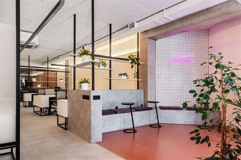 一種是沿辦公室周邊設(shè)置了一圈燈帶,燈光從白色天花板上反射出來,散發(fā)出令人賞心悅目的溫暖漫射光。還有一種線性照明形式呼應(yīng)流線型的建筑輪廓,將整個辦公室從入口區(qū)域連接到行政工作區(qū)。另一個這樣的設(shè)計元素出現(xiàn)在廚房區(qū),當(dāng)陰天自然光不足時可以照亮這里的空間。此外,每組工位都有一個獨立光源,如有必要,每個員工都可以自行打開或關(guān)閉。