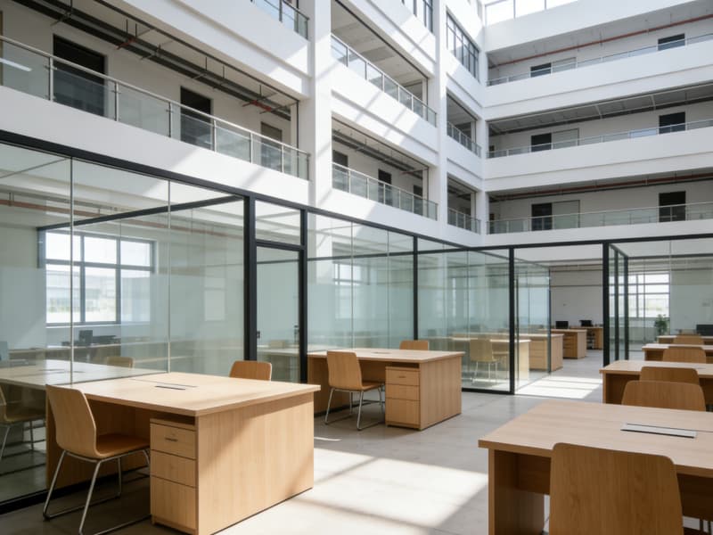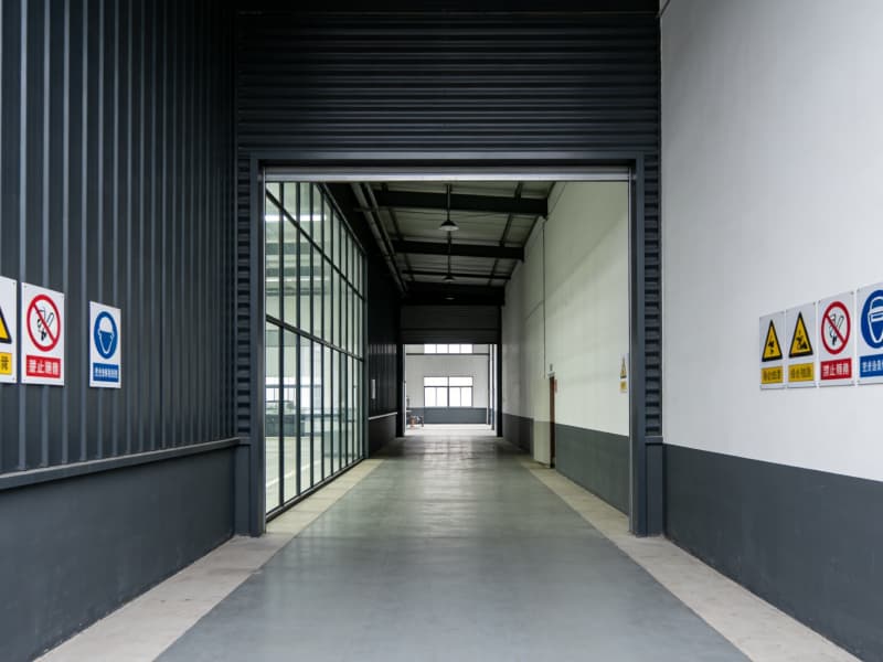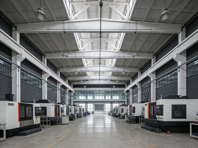 進(jìn)入廠房?jī)?nèi)部,生產(chǎn)區(qū)域挑高設(shè)計(jì),空間開闊,頂部的桁架結(jié)構(gòu)裸露在外,搭配軌道式吊燈,營(yíng)造出強(qiáng)烈的工業(yè)氛圍。地面選用耐磨的金剛砂地坪,承載能力強(qiáng)且便于清潔,滿足高強(qiáng)度生產(chǎn)需求。