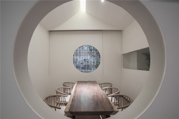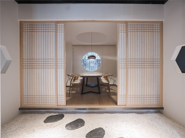 由于原建筑是90年代新建的主體商住樓,一樓整層都是沿街商鋪,二樓以上都是住宅區(qū),使得空間性質(zhì)較為復(fù)雜,柱子間隔相近很難聯(lián)動空間,故外建筑立面大膽突破,用圓鋼管將整層的外立面連貫起來,加上自然景觀,產(chǎn)生強(qiáng)大的磁場,讓人過目不忘,整個空間分為四大區(qū),一區(qū)為接待大堂區(qū),二區(qū)設(shè)為景觀包廂區(qū),三區(qū)設(shè)為云水臺卡座區(qū),四區(qū)設(shè)定為多功能互動區(qū),由于四區(qū)之間有一個形象產(chǎn)品獨(dú)立店展示.空間竹子為元素貫穿每一個區(qū)域,尤其是一區(qū)和三區(qū)之間,讓空間垂直連貫,產(chǎn)生強(qiáng)大的互動,每個包間設(shè)計(jì)效果都是非常有層次,包廂空間感個個都是獨(dú)一無二的體驗(yàn),人坐其中,心靈安然自得,樸素而接地氣的材料,如:瓦片、細(xì)竹、青石板、枯干樹、素水泥等自然材料.