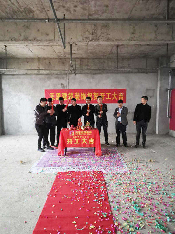 開工現(xiàn)場,客戶與天思裝飾工程部負責人,項目經理都來到了現(xiàn)場