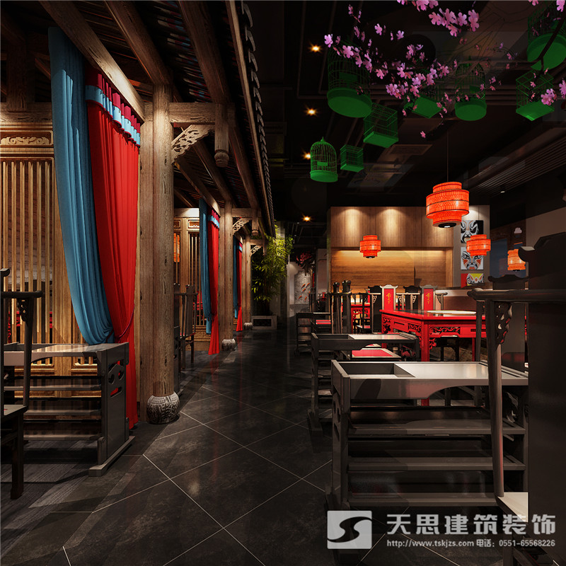 本次為合肥香天下火鍋店分店徽淮南店裝修設(shè)計(jì)效果,在本次火鍋店設(shè)計(jì)中,設(shè)計(jì)師采用新中式做為空間設(shè)計(jì)風(fēng)格,設(shè)計(jì)師希望讓客戶在這里感受到不一樣的氛圍。