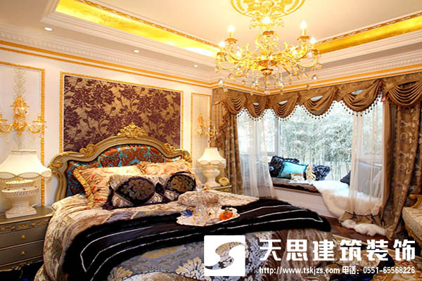 這個和上圖有明顯的區(qū)別,這是一個歐式裝修風格的臥室。吊頂采用極為歐式還有布藝窗簾。燈槽也是采用了金色作為背景色。使整個空間看起來極為金碧輝煌,更中式的比較歐式顯得比較富麗堂皇極為惹眼。但是中式講究的低調(diào)內(nèi)涵,大氣和沉穩(wěn)。這只是燈飾在兩種中袖風格中不同的作用。其實現(xiàn)實中裝修風格多樣化,配合裝修材料和軟裝的搭配選擇合適的燈飾,能夠給你帶來更多的驚奇。