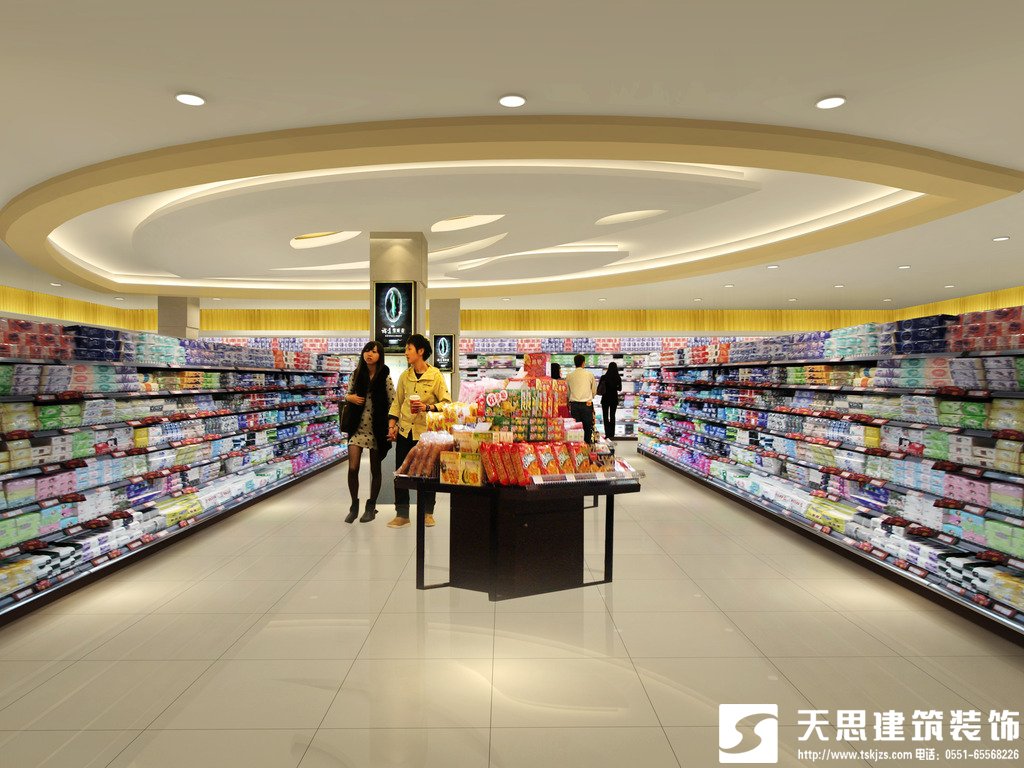 超市裝修不能太奢華,以實(shí)用為主,每天都會(huì)去超市,吸引我們的只有超市里琳瑯滿目的商品,如果整體風(fēng)格太奢華,就會(huì)使顧客產(chǎn)生壓抑感,超市就是一個(gè)舒適的地方,去超市就是回歸家庭的一種方式,家居的環(huán)境更能使人溫暖。所以整體的顏色就要選用淡雅的顏色,色系不要太多,簡(jiǎn)潔清爽就好。