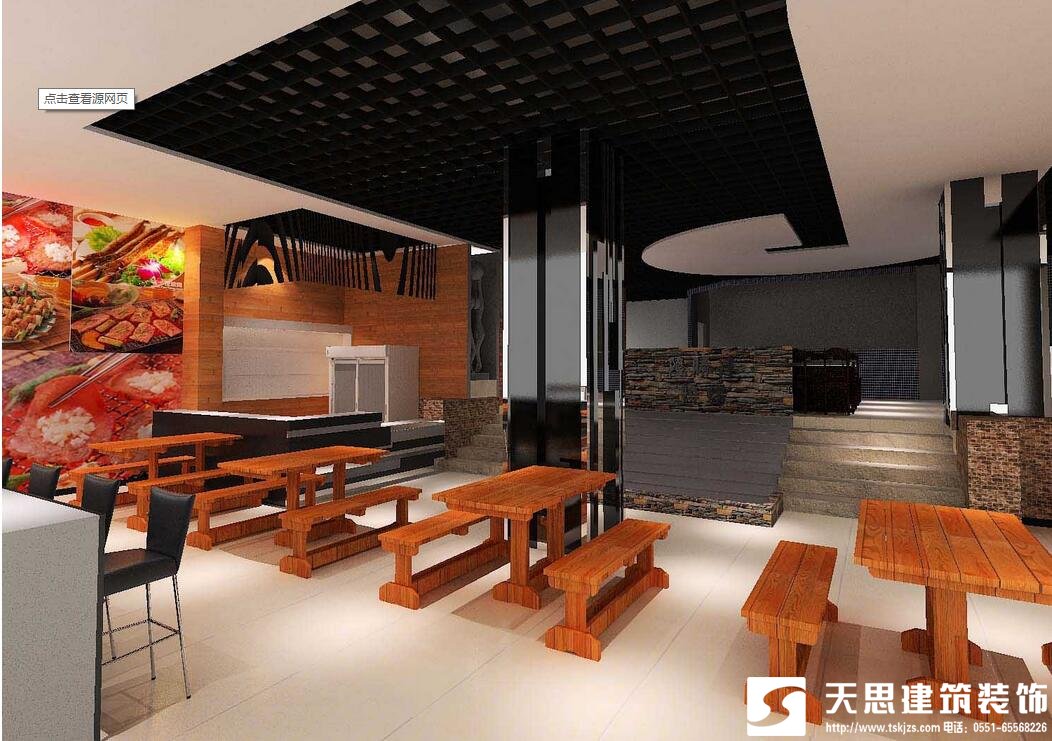 7、燒烤店裝修設(shè)計(jì)墻面的處理:以前沒有墻紙之類裝潢的時(shí)候,大多燒烤店都是白色或者圍一些墻裙,白色容易弄臟而且不好清洗,時(shí)間長(zhǎng)了墻面的衛(wèi)生會(huì)很大的影響客人就餐的心 情,因?yàn)闊镜暧托员容^多,客人吃飯手腳不老實(shí)來回蹭。墻面可以貼墻紙,但是顏色選擇上不但看起來干凈、明亮而且不能易臟,這個(gè)裝修感覺,磚木色的地板任 何時(shí)候看起來都是顏色亮麗。