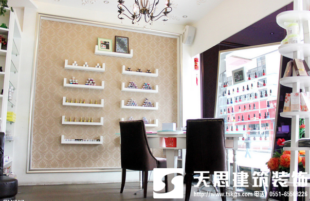 合肥天思裝飾提醒大家在這個(gè)追求美和健康環(huán)保的年代美甲店的室內(nèi)光線應(yīng)該充足,白天盡量采用自然光,選用落地玻璃窗能夠有效的利用自然光,讓室內(nèi)能有很好地采光性。在燈光的選擇上,以溫馨為主,能夠讓顧客在享受服務(wù)時(shí)放松身心,而光線的層次感,能夠讓顧客置身于愉悅輕松的氛圍中,更好地襯托出美甲的效果來(lái)。