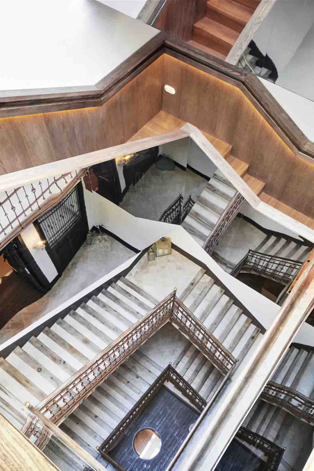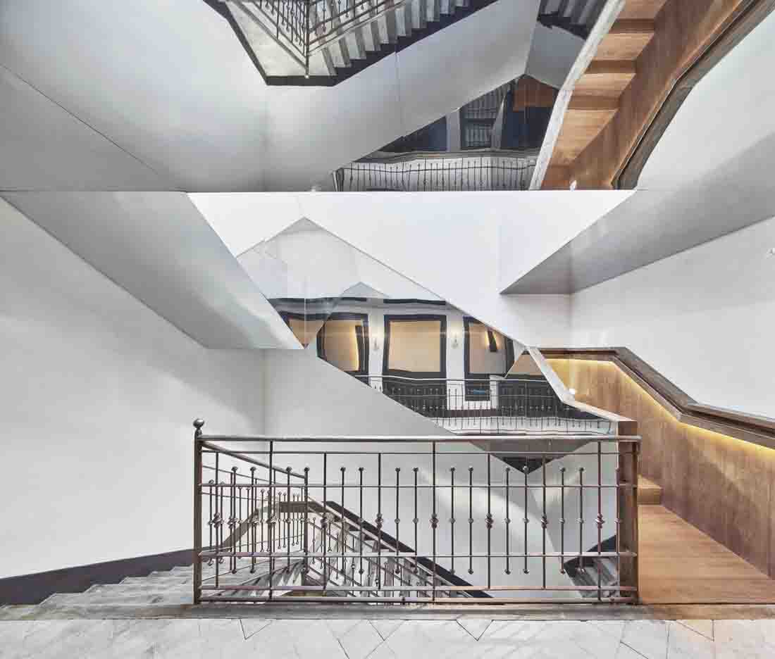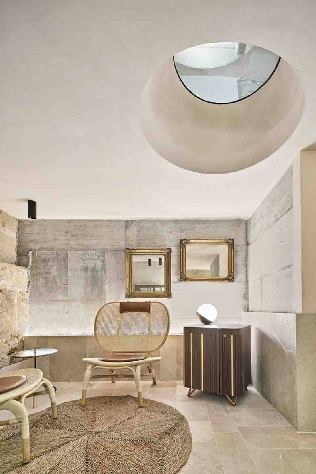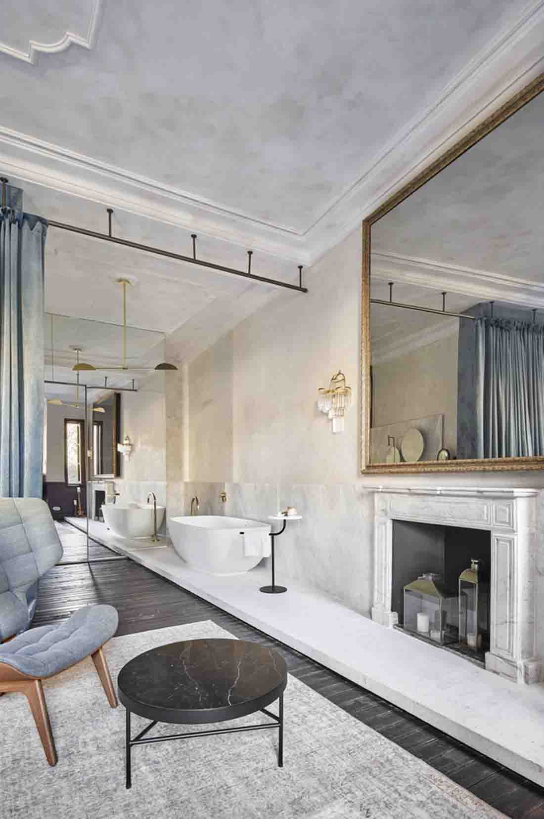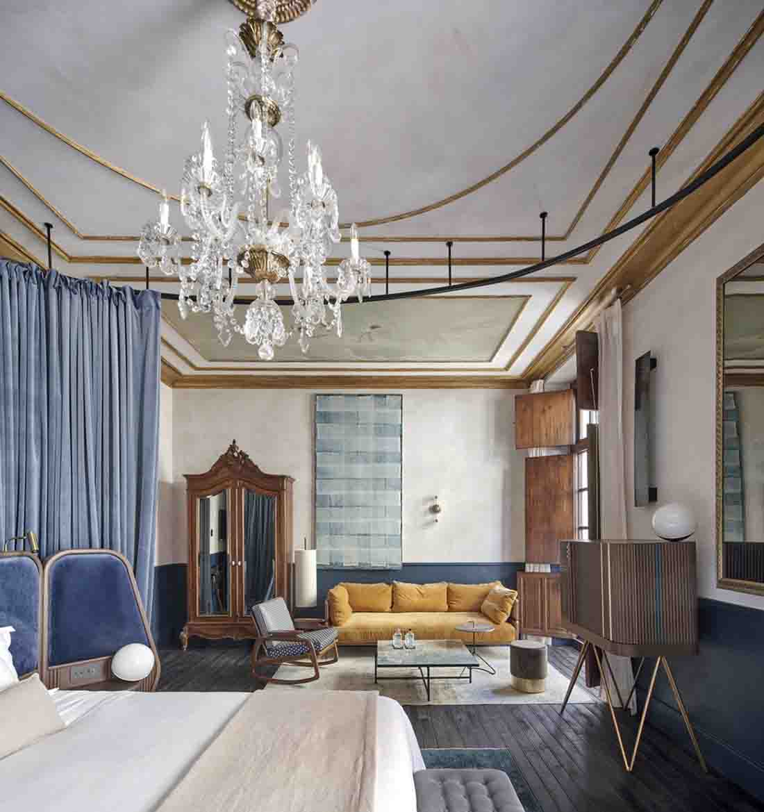 設計師旨在喚起比酒店更多的參觀房屋的經(jīng)歷。因此,客戶不是在酒店接待處而是在房子的門廳見面;找到的餐廳而不是餐廳,而是找到了居民用餐室,這些房間和客廳就像您在老房子中找到的那樣。該項目精心保留了建筑物中浪漫的氛圍,并與不同時期的干預和元素進行了有意識的對比。這是對現(xiàn)有百年建筑雜交的尊重,它保留了過去的痕跡,并避免了房屋從未擁有過的輝煌過去的錯誤恢復。