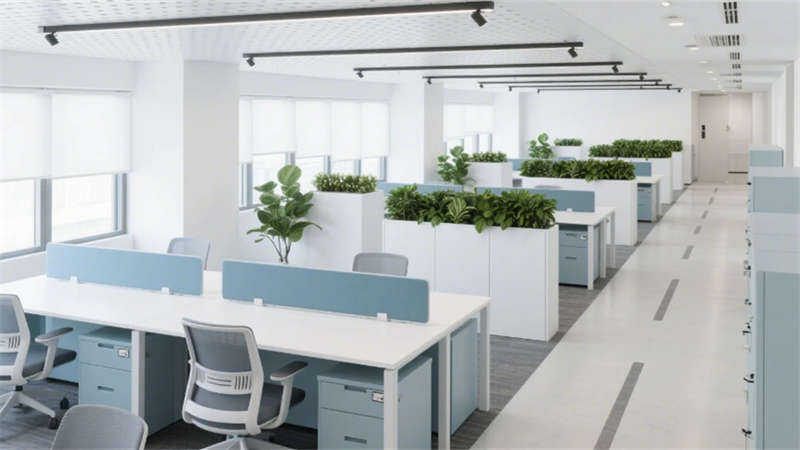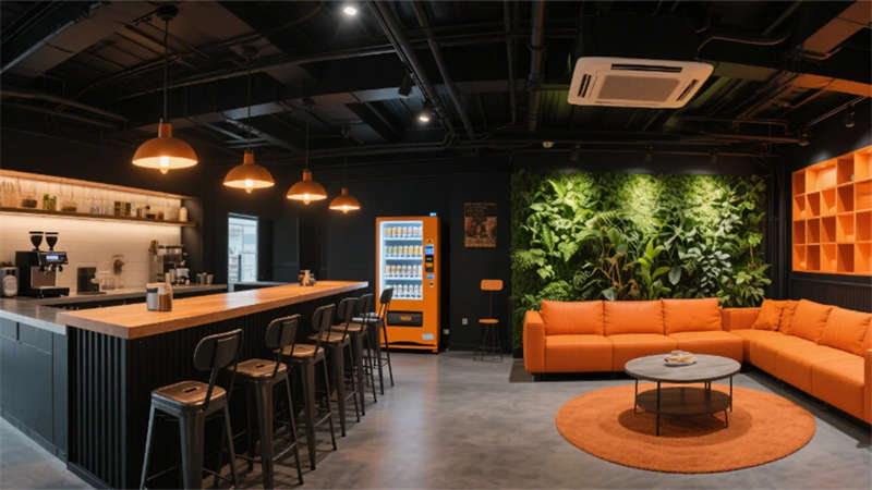 人性化細節(jié)貫穿各區(qū)域:電梯廳導向系統(tǒng)與隱藏式消防設施實現(xiàn)功能隱形化,員工休息區(qū)混搭工業(yè)風吧臺與暖光沙發(fā),搭配咖啡機與綠植墻釋放壓力。設計同步植入環(huán)保理念,采用低能耗照明系統(tǒng)、空氣監(jiān)測模塊及可回收建材,構建健康可持續(xù)的辦公生態(tài),傳遞企業(yè)面向未來的品牌價值觀。
