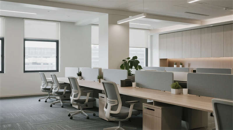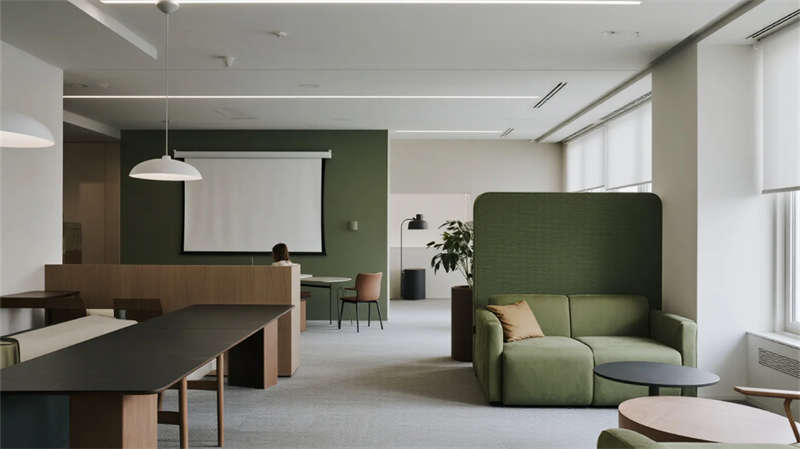 在現(xiàn)代簡約風(fēng)格的引領(lǐng)下,該辦公空間以開放性和人文關(guān)懷為核心,打造了一個流暢而高效的日常工作環(huán)境。整體設(shè)計強調(diào)視覺統(tǒng)一性,通過淺色調(diào)的墻面與地板、簡潔的家具線條以及自然元素的融入,營造出寧靜而專業(yè)的氛圍。功能區(qū)之間無縫銜接,例如協(xié)作區(qū)與開放式辦公區(qū)通過綠植和智能燈光形成自然過渡,確保團隊互動的同時兼顧個人專注需求。休息茶水區(qū)則以溫馨的布局促進(jìn)員工放松,而創(chuàng)意工坊區(qū)則激發(fā)創(chuàng)新思維,多功能活動區(qū)則支持多樣化的工作模式。
