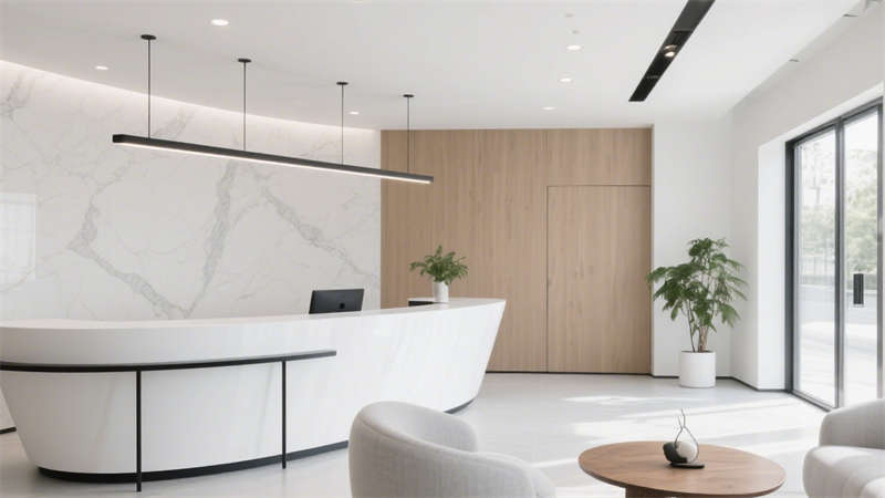 細(xì)節(jié)處理上,墻面采用簡(jiǎn)潔的裝飾手法,避免過(guò)多繁復(fù)造型,地面材質(zhì)選擇耐磨且易清潔的種類,既符合辦公空間的實(shí)用需求,也保持了整體風(fēng)格的統(tǒng)一性。整體設(shè)計(jì)沒有多余的裝飾堆砌,而是通過(guò)對(duì)空間、色彩、材質(zhì)的精準(zhǔn)把控,打造出一個(gè)兼具美學(xué)感與實(shí)用性的辦公環(huán)境,讓辦公空間既簡(jiǎn)潔大氣,又能滿足日常辦公的各項(xiàng)功能需求。
