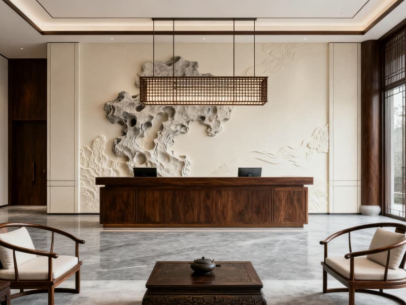 細(xì)節(jié)設(shè)計(jì)中,將宿州文化元素巧妙融入,如靈璧石紋理背景墻、仿漢闕入口景墻、非遺手工藝品陳列等,增強(qiáng)空間的地域認(rèn)同感;同時(shí)注重人性化與實(shí)用性,采用人體工學(xué)家具、智能感應(yīng)設(shè)備、隱形收納系統(tǒng)等,提升辦公舒適度與空間利用率。整體設(shè)計(jì)既滿(mǎn)足現(xiàn)代商務(wù)辦公的高效需求,又通過(guò)中式美學(xué)與地域文化的融合,為企業(yè)打造獨(dú)具格調(diào)的辦公環(huán)境。