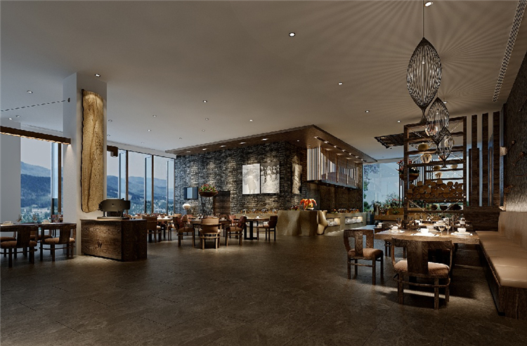 投資方希望打造一個(gè)具有民族特色又同時(shí)具備國(guó)際化背景的星級(jí)度假類型的酒店設(shè)計(jì)。對(duì)傳統(tǒng)文化的有機(jī)傳承和再創(chuàng)造是設(shè)計(jì)師始終思考的命題。以山、水、鼓、火、圖騰犬五大元素為主線貫穿于室內(nèi)設(shè)計(jì)中。