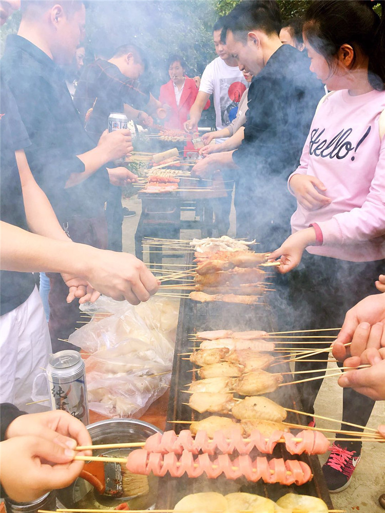 10月21日,大家準時到達目的地。領(lǐng)導(dǎo)與員工穿插入座, 拿材料、搬爐子、生火……看著熊熊的炭火燃燒著,整個現(xiàn)場頓時沸騰起來?;顒悠陂g,大家興致勃勃地互相交流,增進了相互之間的了解與認識,促進了部門與部門間的合作精神,拉近彼此的距離。