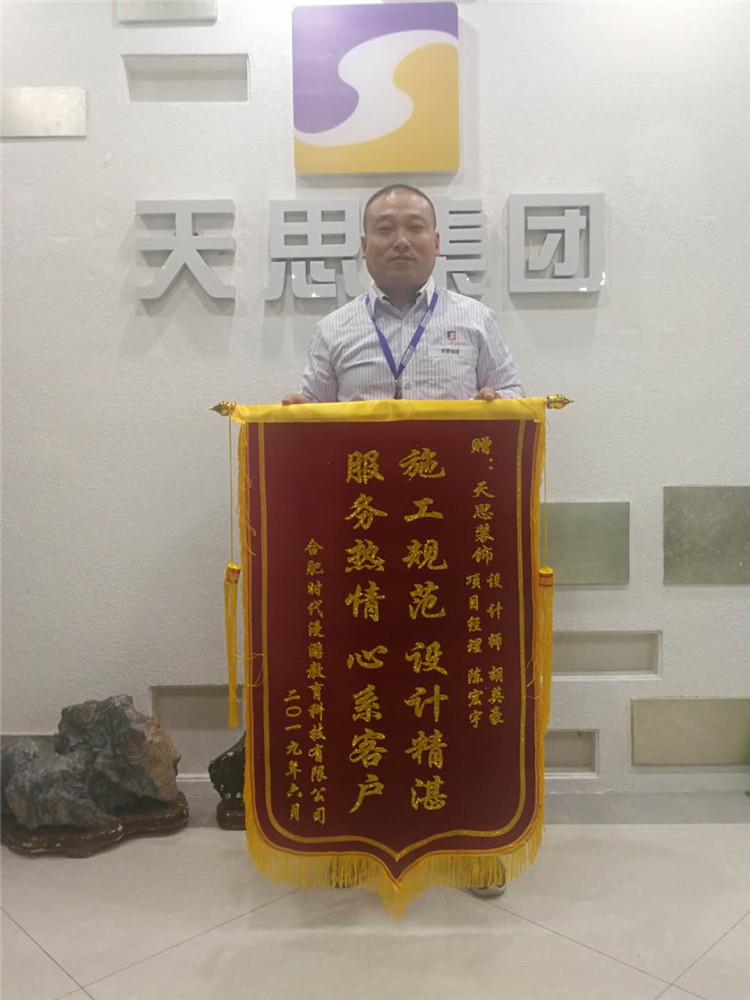 在送錦旗時,業(yè)主還贊道:"天思裝飾的陳工工作認真、負責(zé)、敬業(yè),和他打交道我很放心", 開工裝修時候正是酷熱的夏天,負責(zé)裝修的陳工每天都在工地,每個環(huán)節(jié)都主動和他溝通,更重要的是在很多方面提出合理的建議;有問題就及時整改,從材料進場的嚴格把關(guān),到施工過程質(zhì)量的嚴格控制.這份誠懇敬業(yè)的態(tài)度讓他非常感動.