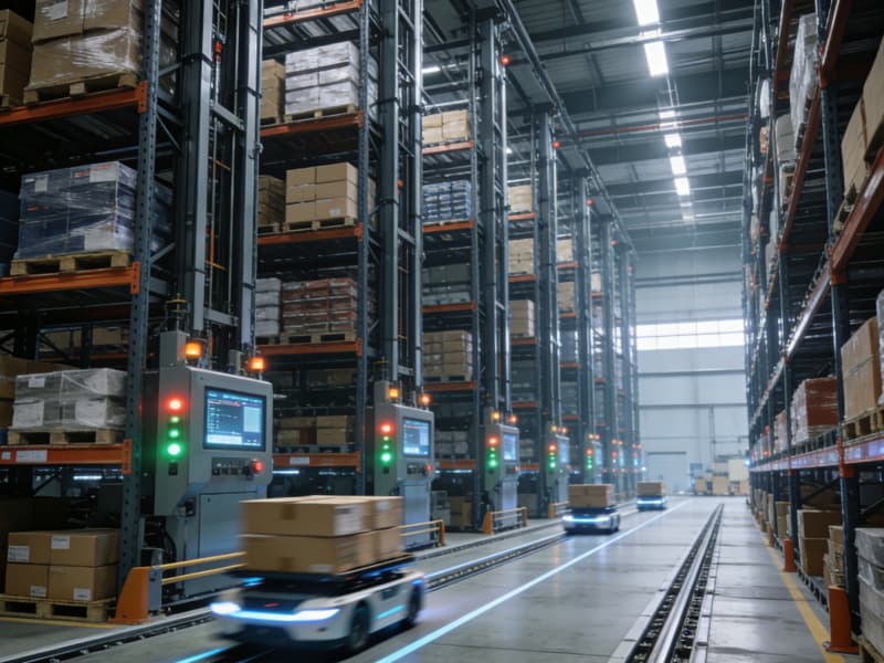 倉儲區(qū)運用自動化的立體貨架,通過物聯(lián)網(wǎng)系統(tǒng)實現(xiàn)精準(zhǔn)庫存管理。智能運輸小車在劃定的軌道上穿梭,高效完成貨物搬運。
