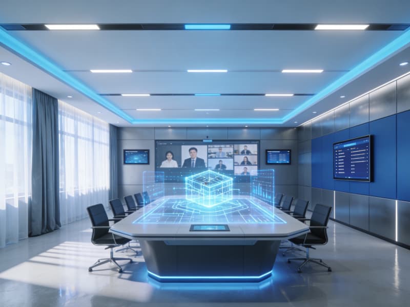 會議室配備全息投影設(shè)備,滿足遠(yuǎn)程會議與虛擬展示需求。智能化的燈光與窗簾系統(tǒng)可根據(jù)會議場景自動調(diào)節(jié)。