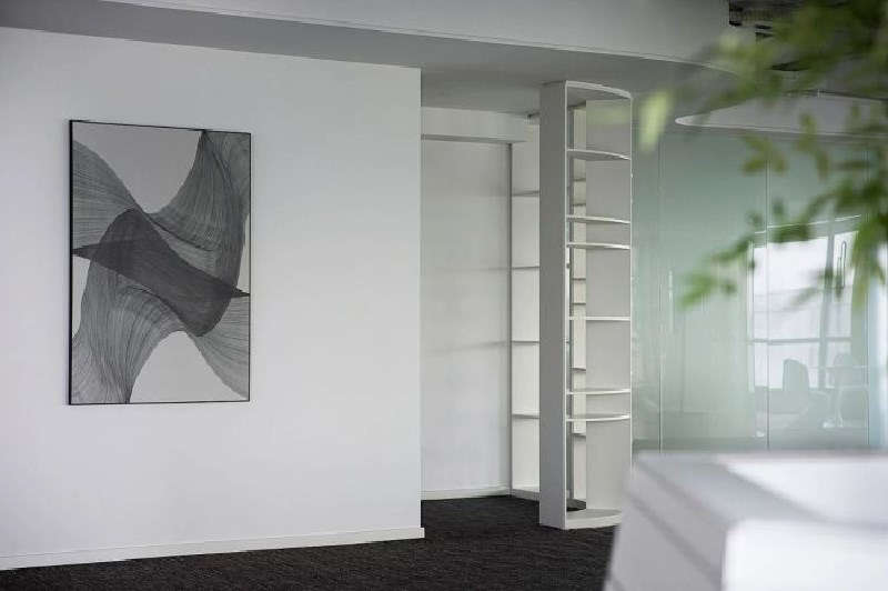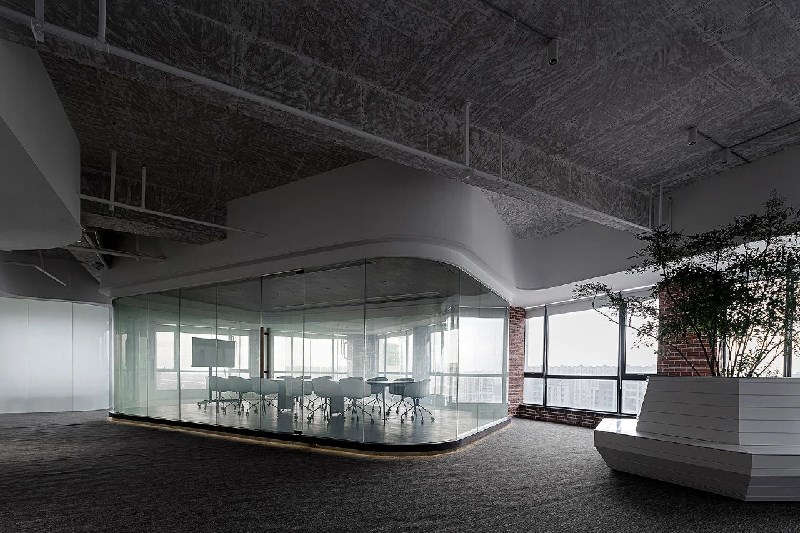 不同于以往辦公一味追求的對稱藝術,經(jīng)由橫平豎直的線條勾勒,本案布局在硬朗的輪廓下規(guī)整有序,又與弧形彎道相輔相成,運用圓角規(guī)避各處尖銳轉折,柔和視覺。