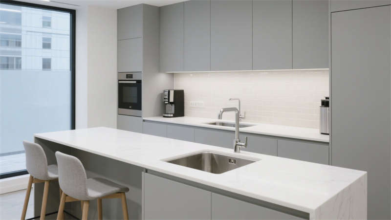 本設(shè)計圍繞現(xiàn)代簡約風(fēng)格展開,從室外到室內(nèi)形成統(tǒng)一的視覺體系。室外效果圖呈現(xiàn)出簡潔大氣的建筑外觀,線條流暢利落,色彩搭配沉穩(wěn)雅致,既符合辦公場所的專業(yè)氣質(zhì),又能在周邊環(huán)境中展現(xiàn)獨特辨識度。?