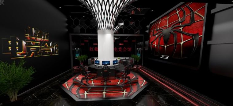 俗話(huà)說(shuō),氣氛不能輸,一個(gè)氣場(chǎng)極強(qiáng)的電競(jìng)會(huì)館絕對(duì)可以讓玩家、選手釋放個(gè)人最大戰(zhàn)斗力,分泌更多的腎上腺素進(jìn)入暴走狀態(tài)。本次案例整體設(shè)計(jì)上走的是現(xiàn)代前衛(wèi)風(fēng),以黑色為主色調(diào)猩紅色為輔,搭配空間感十足的燈光和炫酷的裝飾元素,緊緊扣合“紅蜘蛛”的品牌主題,同時(shí)非常凸顯時(shí)尚特色,符合消費(fèi)群體定位。