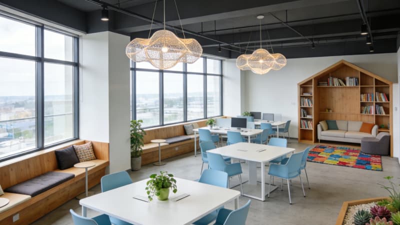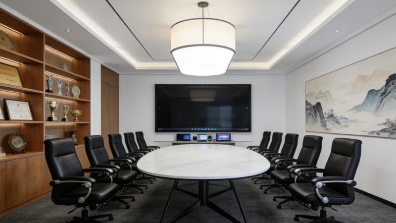 在色彩運(yùn)用上,以白色、灰色為主色調(diào),搭配少量的木色和藍(lán)色作為點(diǎn)綴。白色象征著純凈與整潔,灰色體現(xiàn)工業(yè)的沉穩(wěn)與專業(yè),木色增添自然溫暖氛圍,藍(lán)色則代表科技與創(chuàng)新,共同構(gòu)建出一個(gè)既符合工業(yè)特性又不失活力的色彩體系。材質(zhì)選擇上,大量運(yùn)用金屬、玻璃、石材和木材,通過不同材質(zhì)的組合與碰撞,展現(xiàn)現(xiàn)代工業(yè)美學(xué)。