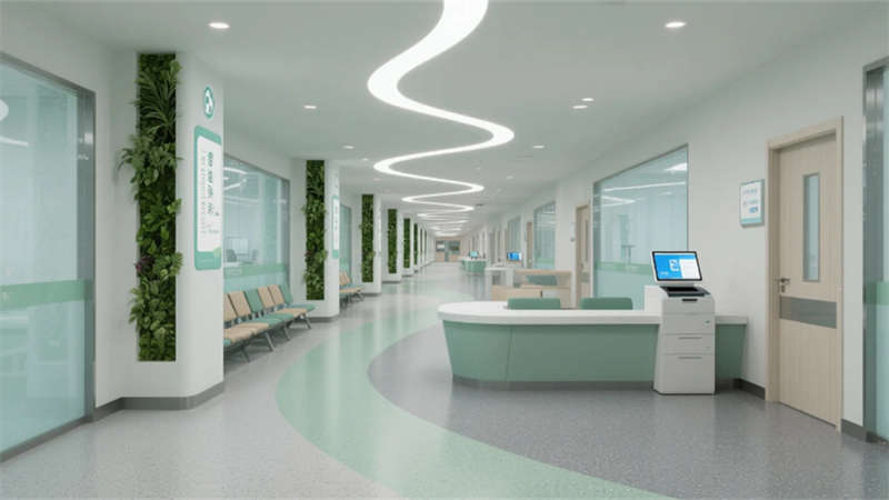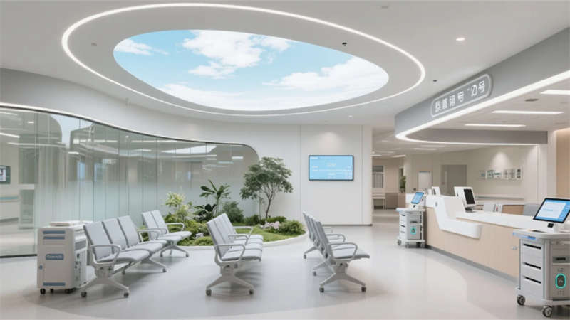 智慧系統(tǒng)隱形滲透每個(gè)角落:候診區(qū)的生態(tài)墻內(nèi)嵌電子叫號(hào)屏,醫(yī)療街導(dǎo)航立柱實(shí)時(shí)更新就診信息,病房床頭屏集成環(huán)境控制與醫(yī)療呼叫功能。特別設(shè)計(jì)的抗菌材質(zhì)與無(wú)縫工藝,在營(yíng)造溫暖氛圍的同時(shí)嚴(yán)守院感防線。
