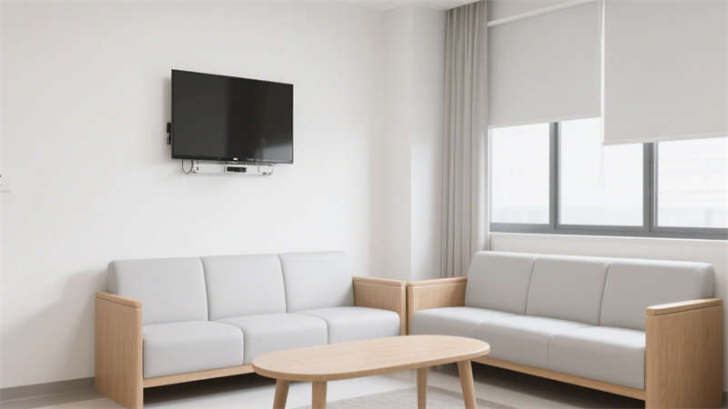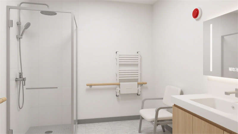 居住房間內(nèi),家具選擇圓角設(shè)計(jì),減少意外碰撞帶來的傷害;床頭設(shè)置緊急呼叫按鈕,方便老人在需要時快速尋求幫助,按鈕位置高度適中,便于老人伸手觸碰。室內(nèi)采光充足,搭配柔和的照明系統(tǒng),避免強(qiáng)光刺激老人眼睛,同時保證夜間行走時的光線亮度。色彩搭配以溫暖柔和的色調(diào)為主,營造溫馨舒適的居住氛圍,幫助老人緩解焦慮情緒,更快適應(yīng)養(yǎng)老院的生活環(huán)境。整體設(shè)計(jì)在滿足適老化功能需求的同時,兼顧現(xiàn)代風(fēng)格的美觀與實(shí)用性,為老人提供一個安全、舒適、溫馨的居住空間。