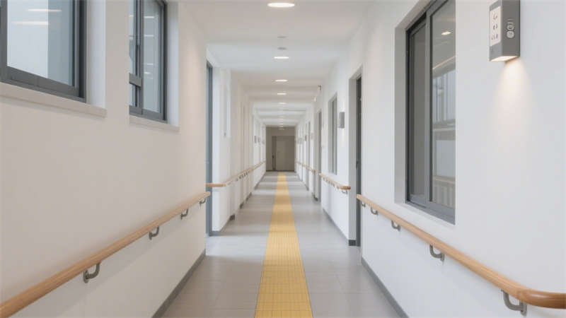 本設(shè)計(jì)聚焦養(yǎng)老院室內(nèi)空間的適老化需求與現(xiàn)代審美融合,從居住者的實(shí)際生活場景出發(fā),打造兼具安全性與舒適度的環(huán)境。在公共活動區(qū)域,采用無高差地面設(shè)計(jì),搭配防滑耐磨的地面材質(zhì),避免老人行走時發(fā)生磕碰或滑倒;墻面安裝便于抓握的扶手,扶手高度與間距經(jīng)過精心考量,貼合老人起身、行走時的支撐需求,同時扶手外觀融入現(xiàn)代簡約線條,不顯突兀。?