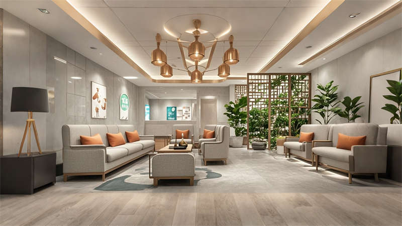 本2000平中醫(yī)院設(shè)計(jì)融合傳統(tǒng)中醫(yī)文化與現(xiàn)代醫(yī)療功能,采用 ' 療愈之境 ' 核心理念??臻g規(guī)劃采用 ' 回' 字形動(dòng)線,門診、診療、康復(fù)三大功能模塊環(huán)繞中央庭院布局。色彩體系以米白、淺灰為基底,點(diǎn)綴赭石、黛青等傳統(tǒng)中藥色彩,墻面肌理漆模擬紙張質(zhì)感呼應(yīng)古籍文獻(xiàn)。診療區(qū)域采用模塊化隔斷系統(tǒng),兼顧隱私與通風(fēng)需求。智能照明系統(tǒng)可模擬晝夜節(jié)律變化,候診區(qū)座椅集成無線充電功能。重點(diǎn)區(qū)域設(shè)置 AR 中醫(yī)文化互動(dòng)裝置,住院部走廊每 10 米設(shè)置中藥香薰擴(kuò)散點(diǎn)。材料選擇注重環(huán)保性與耐久性,地面采用防菌 PVC 卷材,墻面使用易清潔的納米涂層。整體設(shè)計(jì)通過現(xiàn)代設(shè)計(jì)語言詮釋中醫(yī) ' 天人合一 ' 理念,打造兼具專業(yè)醫(yī)療功能與人文關(guān)懷的現(xiàn)代化中醫(yī)院空間。